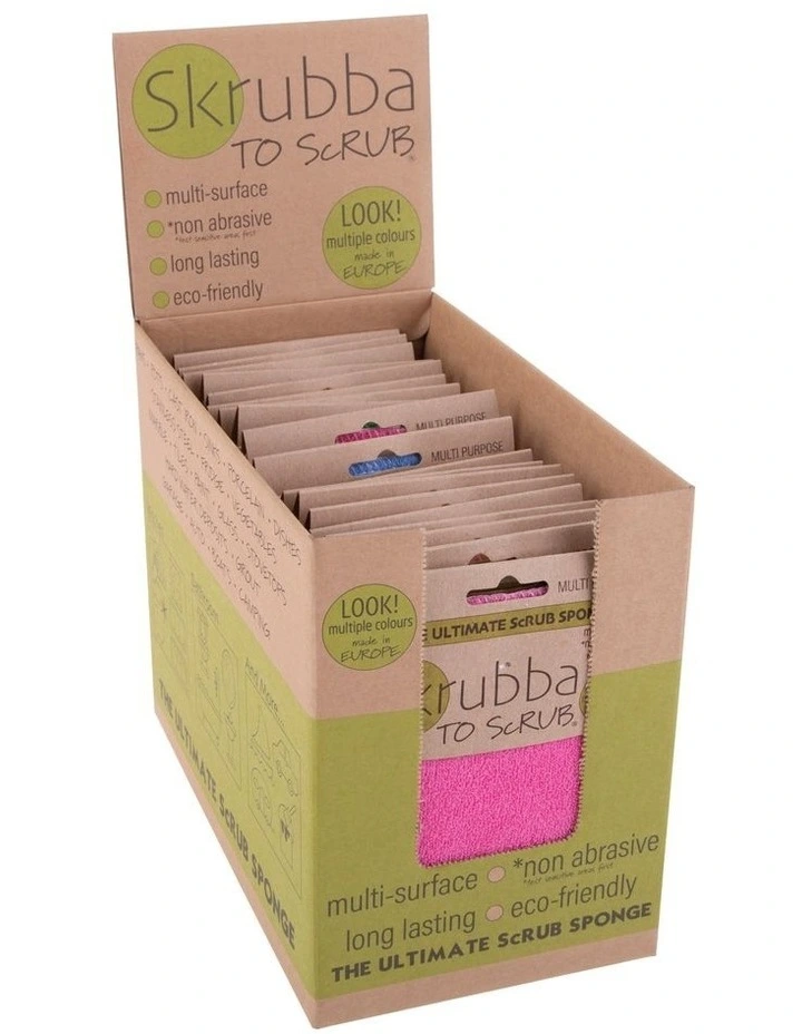 Scrub away tough dirt and grime with the Skrubba Multipurpose Ultimate Scrub Sponge. Eco-friendly, and long lasting, this non abrasive multi-surface sponge is suitable to clean non-stick pots and pans, cast iron, sinks, porcelain, dishes, stainless steel, fridges, vegetables, marble, tiles, paint, glass, stovetops, grout, and much more, simply combine the Skrubba sponge with water and liquid soap.
