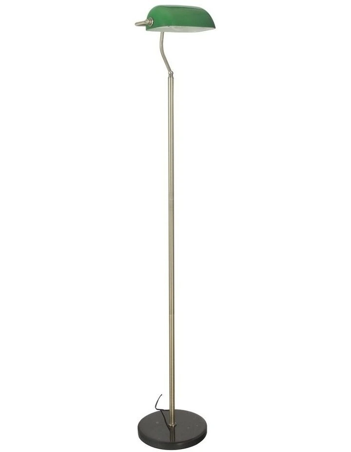 The traditional industrial / retro styling of the bankers floor lamp brings together the dark green bankers lamp glass, antique brass metalware and a black marble base. The triplex gloss green glass is lined white. An excellent reading lamp with great style.