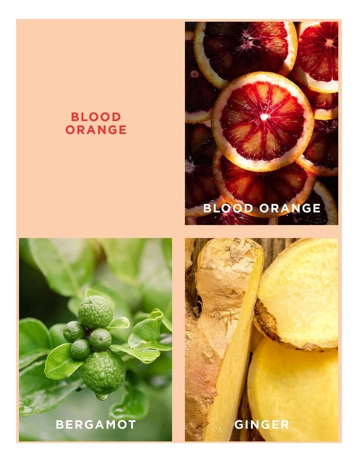 An uplifting, radiant fragrance featuring blood orange and bergamot with cinnamon, ginger, carnation and musk.Â
