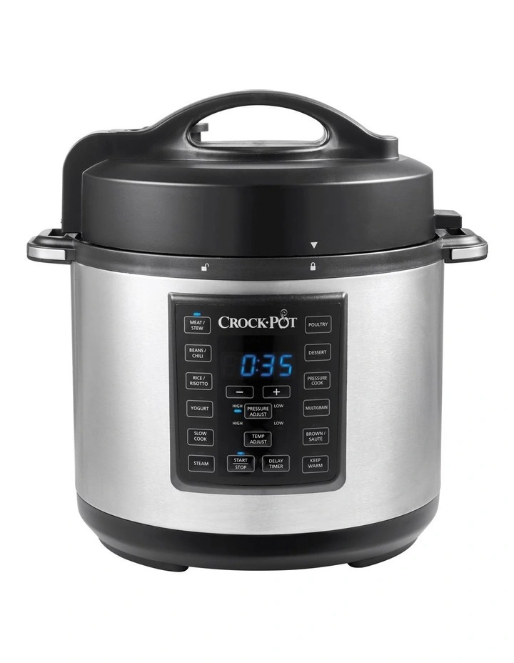 Crock-Pot Express Crock Multi-Cooker is a versatile multi-cooker with 5 appliances in 1. It cooks 5 ways – pressure cook, brown/saut, slow cook, rice and steam.