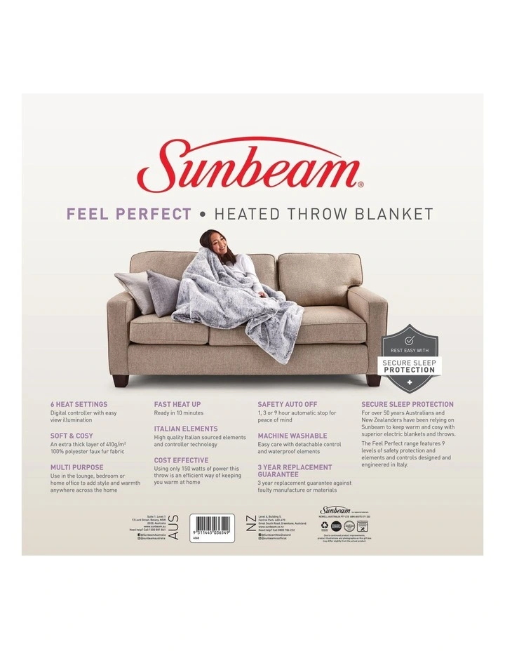 Keep warm during winter with the Feel Perfect Faux Fur Heated Throw Blanket. With Safety auto off, 6 Heat settings and Fast heat up.