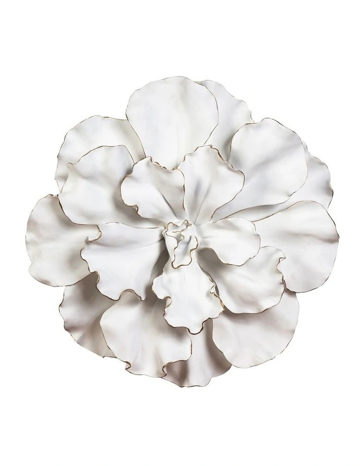 A gardenia-shaped floral wall plaque, available in black and white.