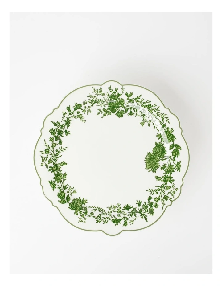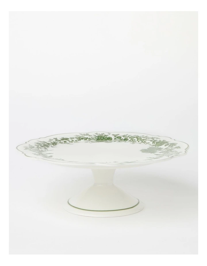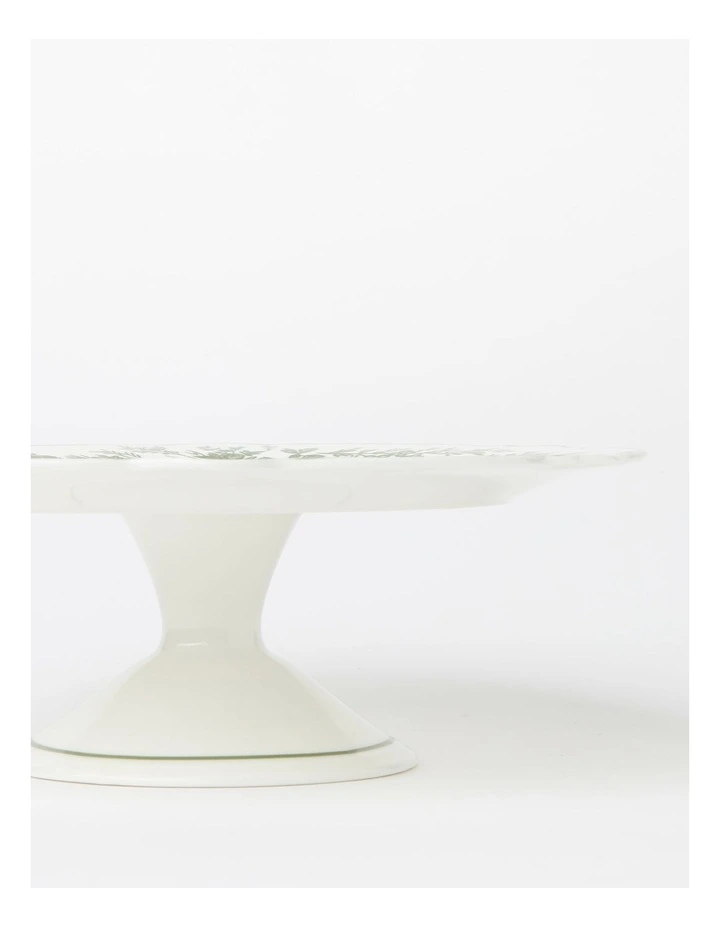 Heritage Green Toile Floral Footed Cake Stand Scalloped in Green