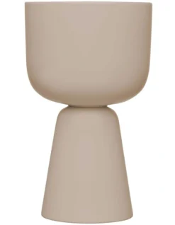 Designer Matti Klenell took inspiration for Nappula from a peculiarly shaped table with swollen feet at the Iittala Glass Museum. The Nappula plant pot is a fun play on the signature silhouette with its flowing curved design. A modern Nordic design classic, the larger size creates maximum impact in any interior. A true inspiration for green displays that allows you to bring a slice of nature inside. Beige highlights the simple design. Striking alone or grouped. A perfect gift.