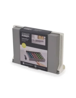 This innovative ice-cube tray features cavities that are linked, allowing water to flow freely throughout the tray. This clever adaptation makes it easier to fill and reduces splashing. When the lid is placed on top it creates a final wall in each cavity, ensuring individual cubes are made when the water freezes. The lid is also stackable so multiple trays can be placed on top of each other in the freezer.