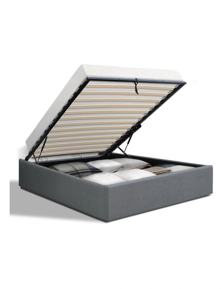 Our Toki Gas-Lift Bed Frame combines exquisite style with great storage practicality. The frame is built with reinforced steel construction while the wooden arched slat frame helps to distribute weight evenly across the framework. Heavy-duty connectors are used throughout the frame to increase its durability and reliability with long -term robust use. And for an elegant finish, the bed frame is padded with high-density foam and upholstered with premium linen fabric. Best of all, the bed frame comes with a gas-lift storage system where you will find acres of space underneath the slatted frame to store all your bedroom and home essentials. And if so desired, the bed frame can be matched with our complementary bed head for a complete look. The bed frame is designed to fit standard Australian-sized mattress.