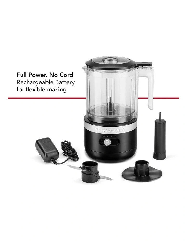 All the power you expect, without the cord. The KitchenAid Cordless Food Chopper is designed with a powerful rechargeable lithium ion battery for optimal runtime and performance, giving you the freedom to control where you cook, without the hassle of a cord.