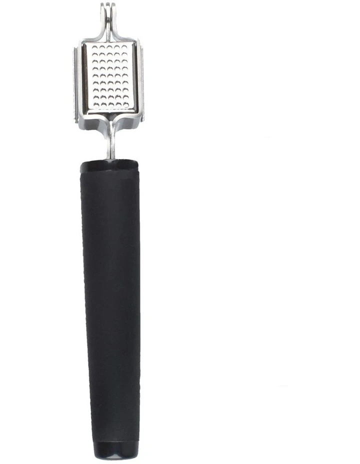 The KitchenAid Soft Touch Garlic Press is made from strong stainless steel to easily crush garlic. The bowl is removable to make cleaning a breeze. The handle is finished in matte black with an embossed logo.