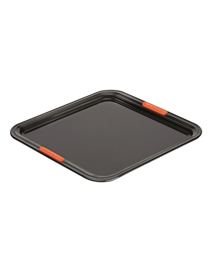 The BakingSheet is a large, flat and rigid tin that can be slid easily in and out of theoven and is perfect for making meringues, shortbread, scones, biscuits andcookies as well as bread shaped by hand. It is ideal to use as a pre-heatedsupport for shapes moulds, oven dishes and acts as a base for flan rings andcake hoops. The wide rim on the outside of the tin, featuring silicone insertsfor added grip when taking to and from a hot oven. Developed to resist stickingfrom higher sugar content baking, the non-stick coating is silicone based,multi-layer and manufactured free of PFOA.