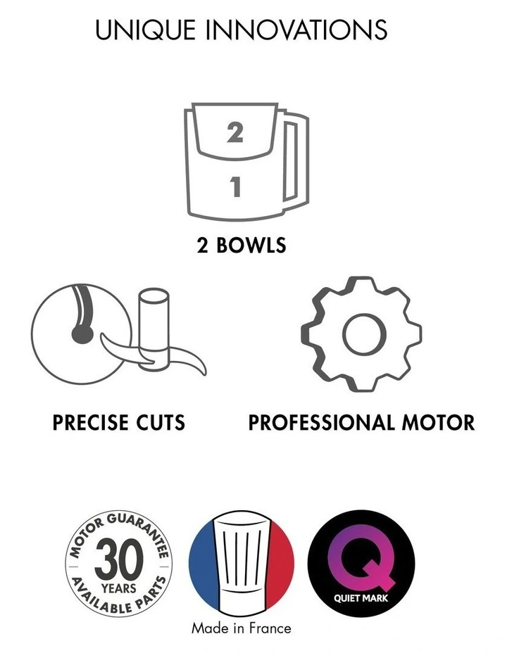 - 2 ABS and BPA-free bowls: Main bowl (1.7L) and Mini bowl (0.6L)
