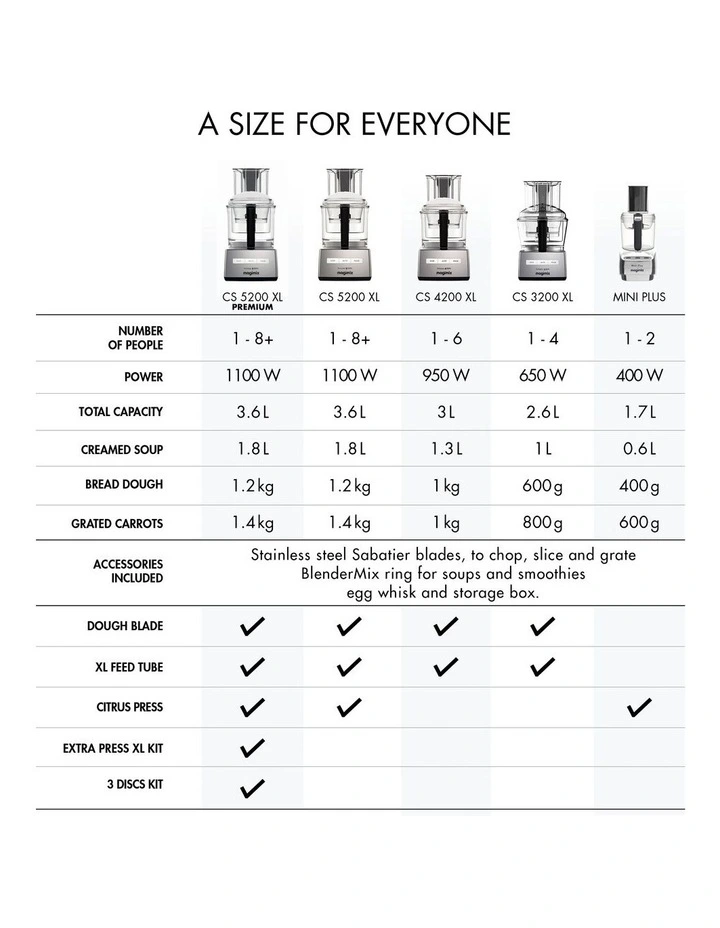 - Slices, Grates, Chops, Whisks, Blends, Kneads & Presses