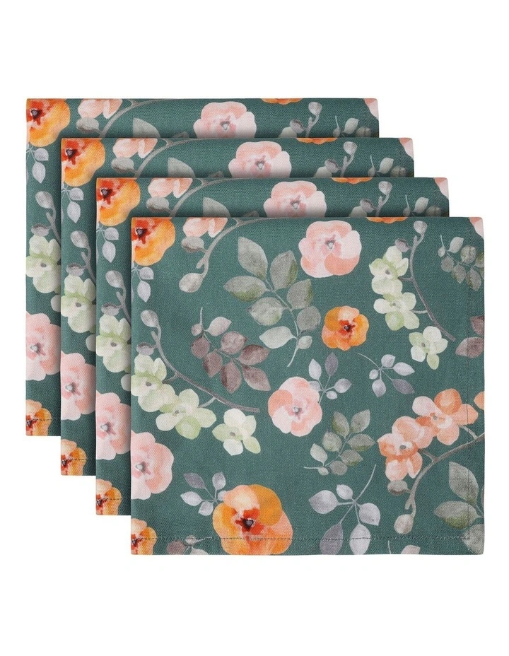 This set of four napkins from the Arcadia collection will bring some vintage flair to your next dinner party. These stylish napkins are the ideal way to add the finishing touches to your table, with a hand-painted floral design in a palette of warm winter colours. Made from 100% cotton, they add an eclectic pop of colour to any setting and coordinate beautifully with the rest of the Arcadia collection.