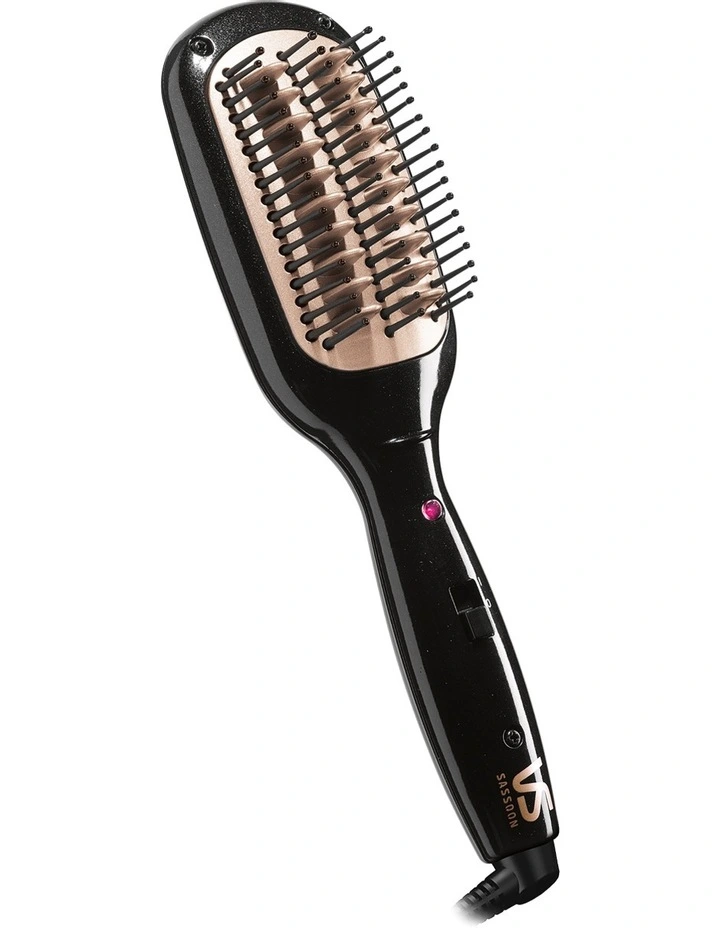 Whether your travels take you around the world or just across town, this mini -sized straightening brush is perfect for on the go styling. Â Featuring a unique combination of bristles that straighten & de-tangle the hair as you brush.