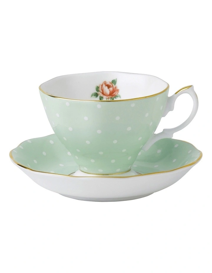 Sprinkled with small, delicate roses and  white polka dots on pale green, the Polka Rose Teacup & Saucer is reminiscent of the 1930s art deco style. Set includes 1 x Teacup 180ml and 1 x Saucer 14cm.