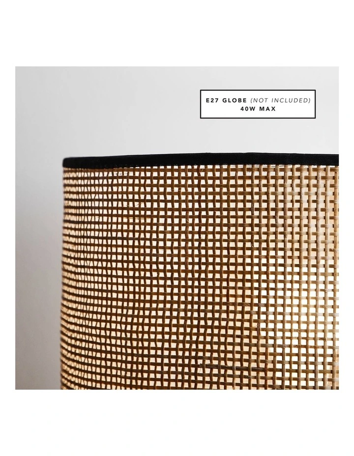 - Metal base; Rattan lampshade.