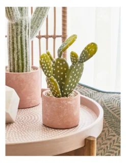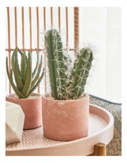 Artificial Cactus In Cement Pot 26x12x12cm In Green/Terracotta