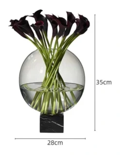 Artificial Dark Purple Calla Lily Arrangement With Fake Water
