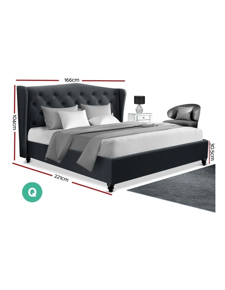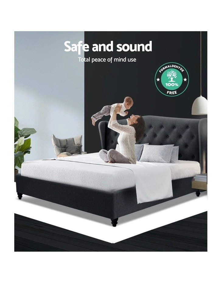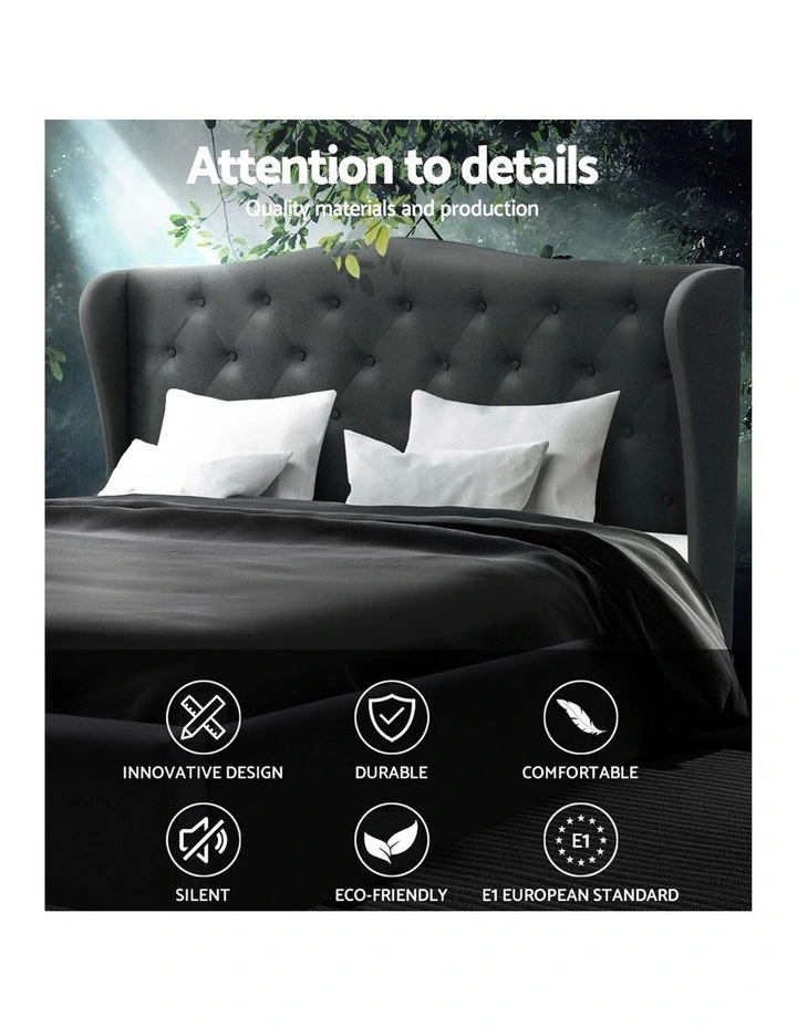 The iconic European wing headboard reflects prestigious grandeur while the tufted design complements its overall image. Padded with high density foam and upholstered in breathable non-woven linen fabric, the Pier Bed Frame is comfortable to lean on and soft to the touch.