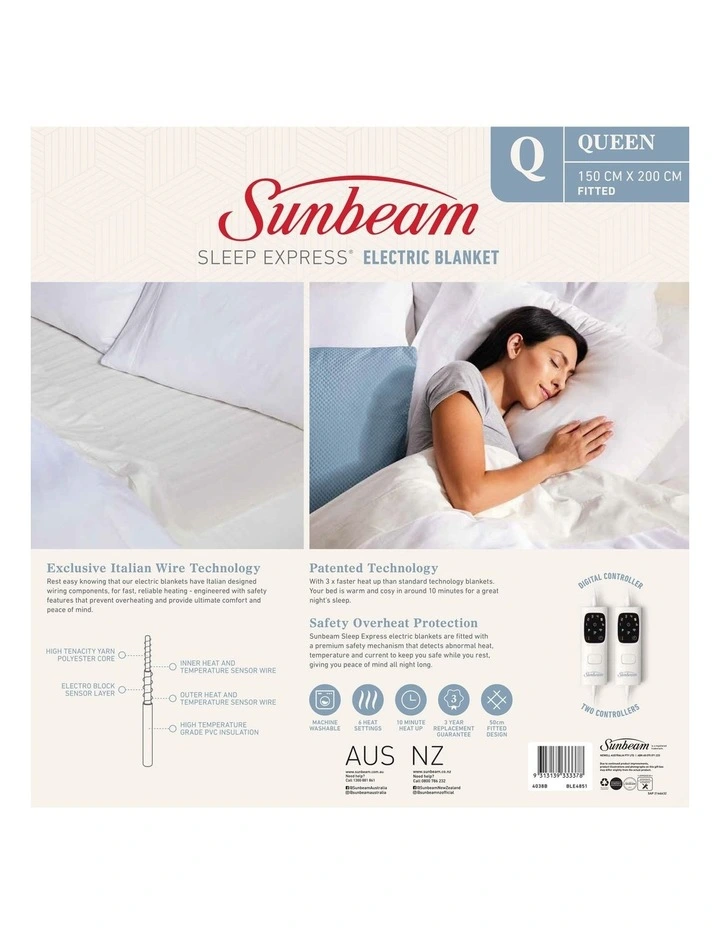 Get cosy quicker with The Sunbeam Sleep Express Electric Blanket. Patented Boost Technology heats bed three times faster than regular electric blankets.