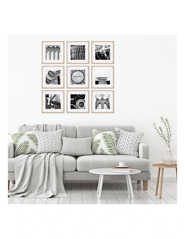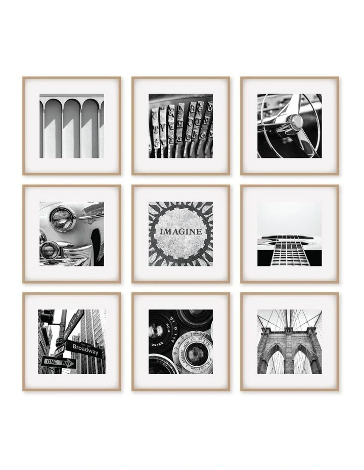 Create a gallery wall you’ve always dreamed of with this pack of nine contemporary frames. Beautifully crafted in eco-friendly engineered wood, each frame is ideal to showcase precious family moments, travel pictures from far-flung places, and display your artwork. What’s more, the frames come with fine art prints inside them. So they are ready to hang straight out of the box.