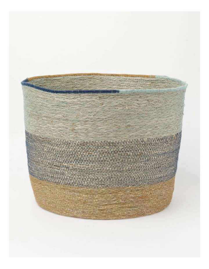 Australian House & Garden Summer Seagrass Storage Basket Small 36x36x28cm in Natural/Blue
