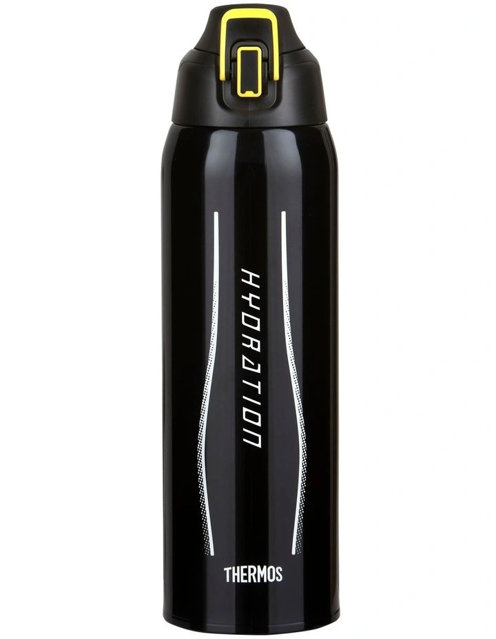 Thermos vacuum insulation technology for maximum temperature retention, keep cold up to 24 hours; Durable stainless steel interior & exterior; Sweat proof design won’t leave water rings; Drink Lid with hygienic cover and easy push button that can be locked; Pouch with strap to carry bottle; Capacity: 1.5L
