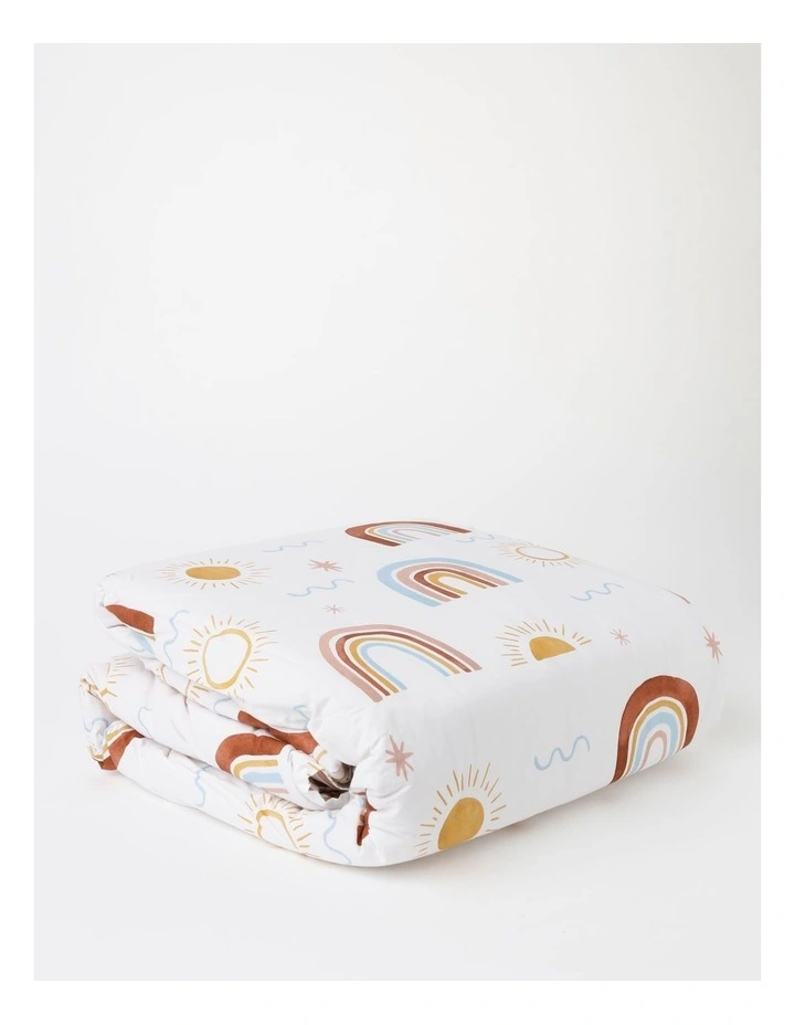 Our Milkshake Kids 3KG Weighted Blanket is designed to provide comfort and relaxation for your child. Offered in a choice of two fun printed designs, Willow Rainbow or Gingham Blue, this blanket is perfect for every child. This blanket features a removable printed cotton outer cover, and a polyester inner cover containing the core polyester fibre and weighted micro-glass beads.